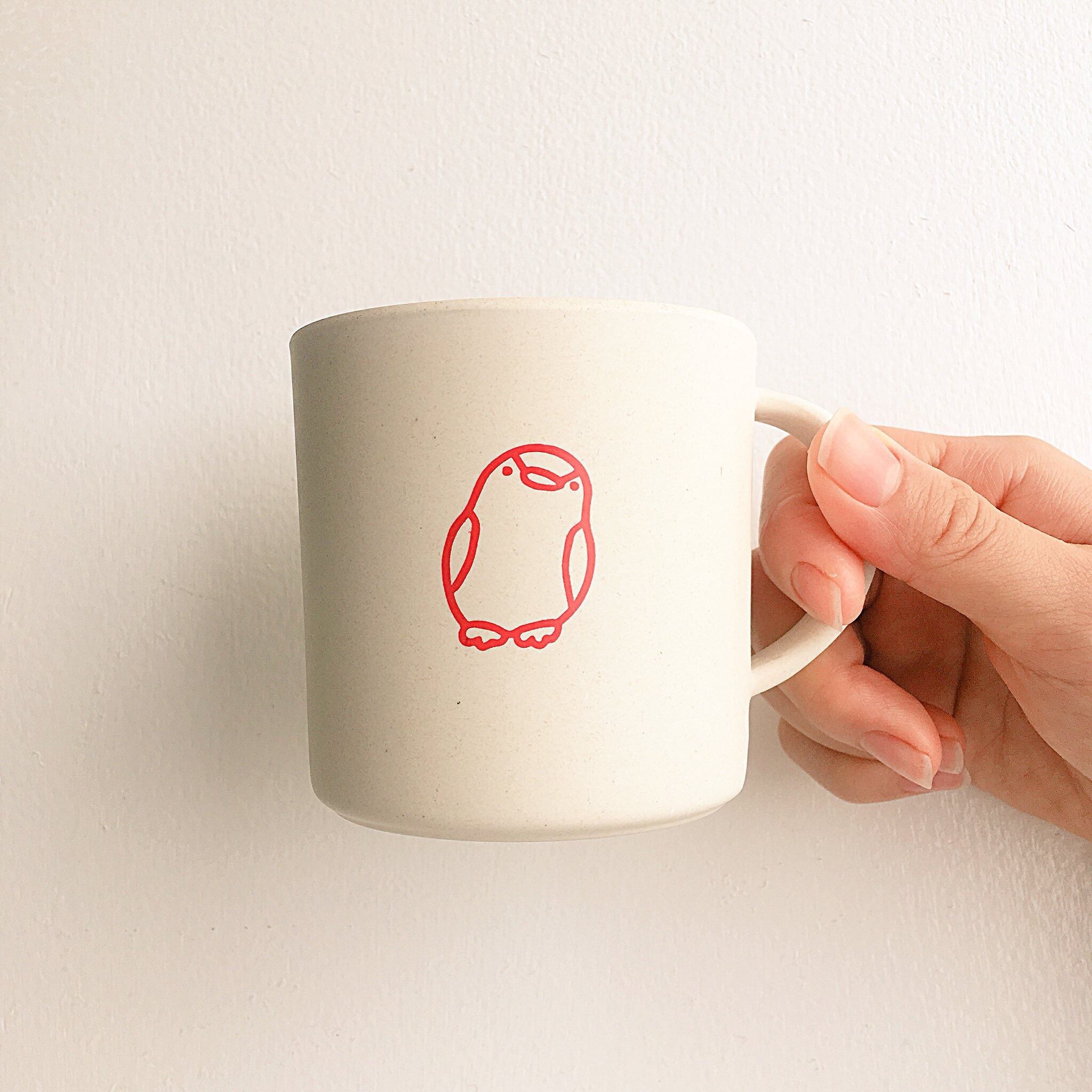マットな質感のマグカップに、シルクスクリーンでプリントしました。